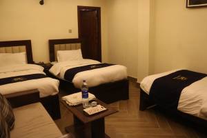 Triple Room offers 1 King bed and 1 Single bed, 2 Sofa Chairs Sitting, Hot & Cold water along with an attached bath.